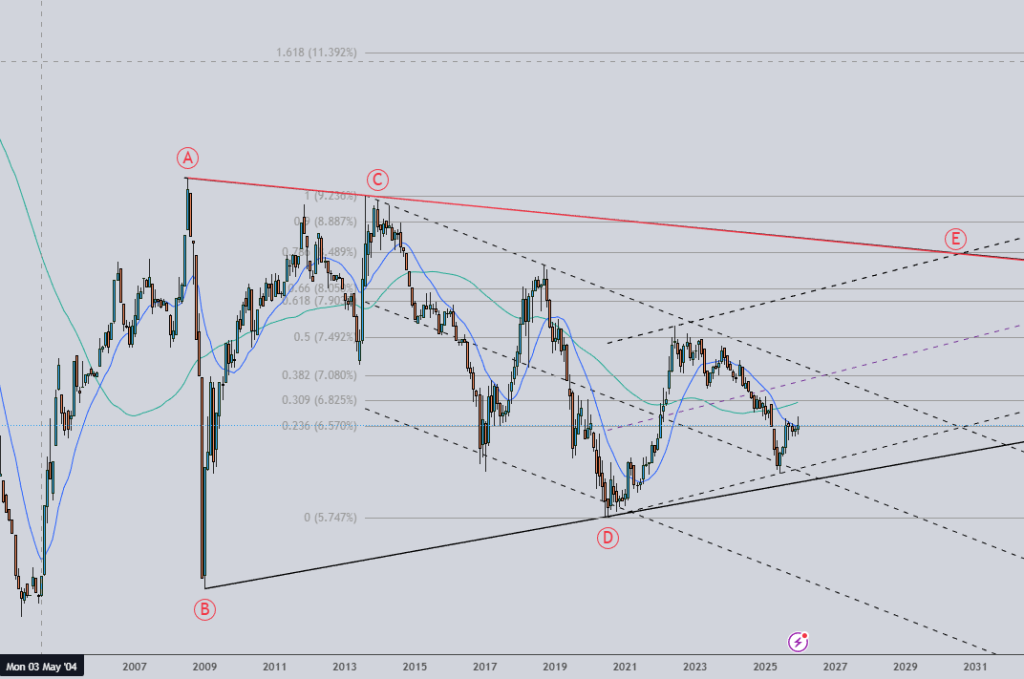 What if the yield chart on 10Y was a triangle or a complex double zig-zag correction (if 2009 lows was taken as truncated bottom).